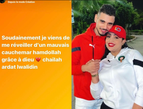 وجاء في تدوينة زوج الفنانة أميمة باعزية : “فجأة استفقت من كابوس والحمد لله، شايلاه أرضاة الوالدين”.