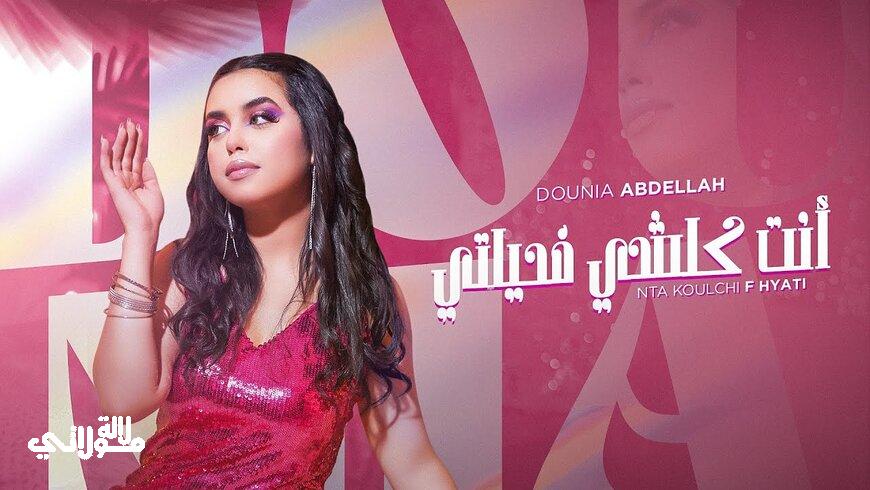 أطلقت الفنانة المغربية، دنيا عبد الله، أغنيتها الجديدة وهي عبارة عن فيديو كليب، تحت عنوان “أنت كلشي في حياتي”، إذ شارك في هذا العمل الفني المتميز كل من محمد المغربي في كتابة الكلمات، ومهدي مزين في التلحين، أما التوزيع فيعود للمبدعين طارق لحجيلي ومدارا، فيما حرص على حسن إخراج الكليب حمزة اليملاحي.