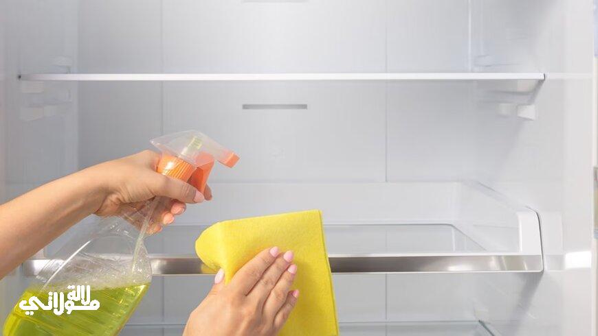 ثم نغسل الثلاجة من الداخل بالإسفنجة بنفس الخلطة.
