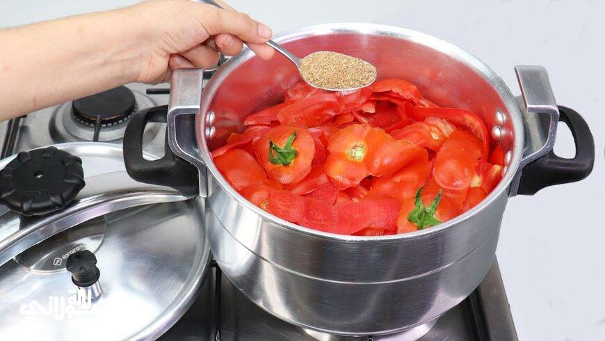 فبعد أن تقومي بتقطيع الطماطم لا ترمي قشورها ولا البذور ولا اللب فقط قومي بوضعها في كيس بلاستيكي كلما قمتي باستعمال الطماطم إلى حين تجدين نفسك بلا طماطم في إحدى المرات أو فقط عندما ترغبين في إعداد طبق المعكرونة أو الكسكس أو البيتزا هنا فقط يمكنك إخراج الكيس وضعيه في إناء مع القليل من الملح على نار هادئة إلى أن يزول الثلج وبعدها اطحنيها في الخلاط واحصلي على طماطم صالحة للكسكس للحريرة بلون احمر وطعم لذيذ.