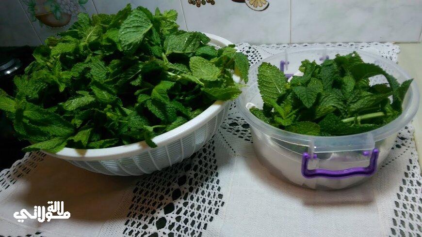 النعناع: للأسف إننا لا نستطيع حفظ النعناع بنفس طريقة البقدونس والكزبرة, وذلك لأن أوراقها تميل إلى الذبلان بسرعة بمجرد تلامسها مع الماء لفترة من الزمن. لذا فأنا اتبع إحدى هاتين الطريقتين لحفظه.