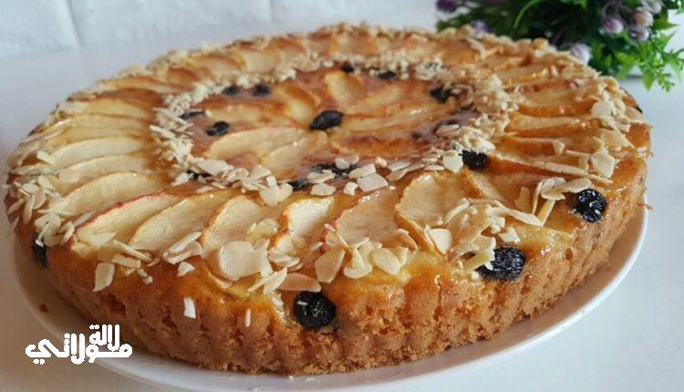 2بيض كاس حليب دافئ نصف كاس زيت 2كؤس دقيق 16غرام خميرة الحلويات سكر منسم بالڤنيلا كاس سكر للتزيين 2تفاح مربى المشمش زبيب اسود سكر قرفة.