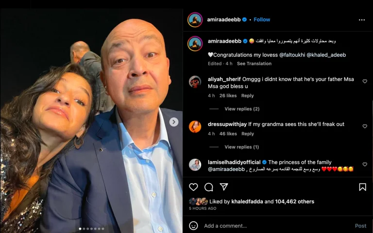 كما نشرت الفنانة الشابة أميرة أديب مقطع فيديو وهي ترقص مع والدها المخرج عادل أديب في حفل خطوبة نجل عمرو أديب وذلك عبر حسابها على “انستغرام” .