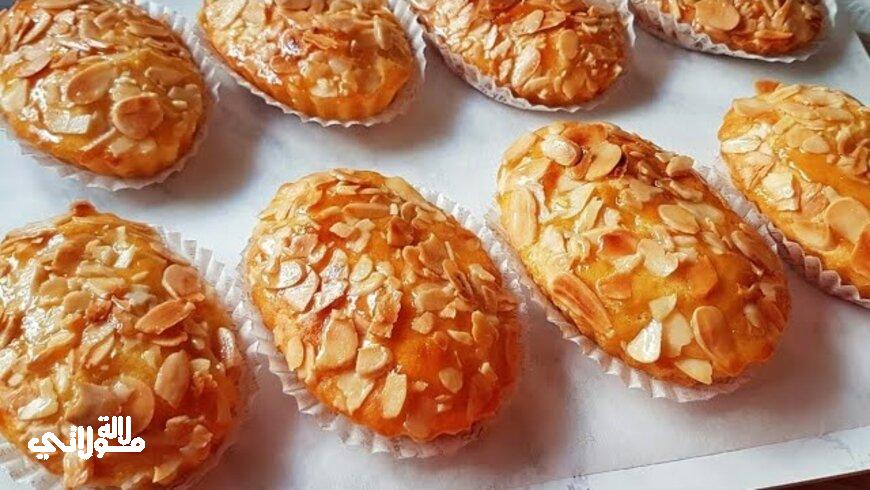 المكونات بيضة واحدة نصف كاس سكر ربع كاس زيت نصف كاس عنبة حليب قطعتين من الجبن مربع مبشور الحامض 8 غ خميرة الحلويات 5 ملاعق كبار من الدقيق الابيض للتزيين ملعقة كبيرة عسل ملعقة كبيرة زبدة حيوانية لوز ايفيلي.
