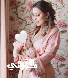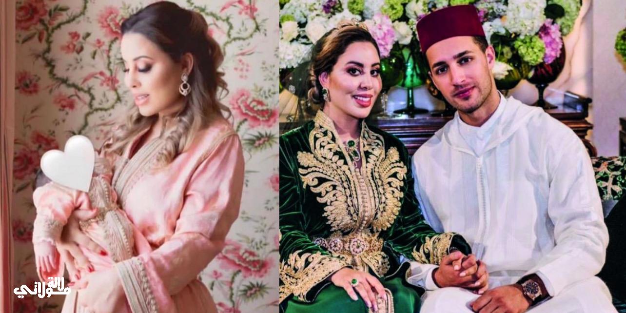 وظهرت الأميرة لالة نهيلة بوشنتوف بصورة جديدة لها وهي تحمل مولودتها لالة مرجانة وترتدي قفطانا مغربيا باللون الوردي نفسه ألبسته لمولودتها الجديدة.