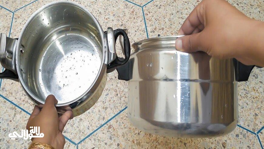 يمكن سيدتي أن تضعي نصف كوب من عصير الليمون في الطنجرة أو في أي إناء آخر مع ملعقة كمية من الماء وضعيها على النار إلى أن يغلي بعدها أزيليها ثم مرري اسفجنة الأواني مع القليل من الصابون ويفضل أن يكون الإناء مازال ساخنا وسترين اختفاء الاسوداد منها وستعود لامعة وكأنها جديدة.