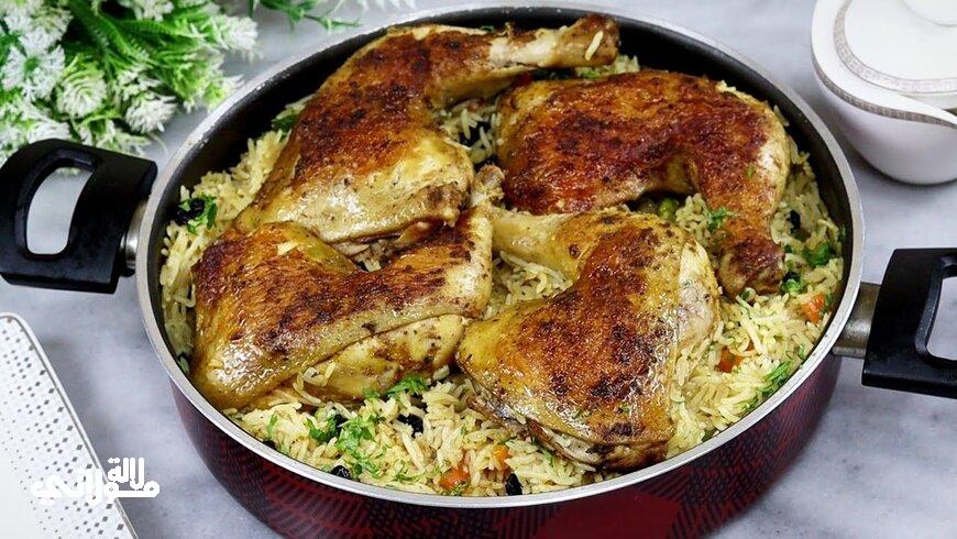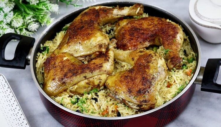 من مطبخ سفيرة الطبخ أم نزار/ المكونات 1 كيلو دجاج اي قطعية نفضلها 1 ملعقة كبيرة بابريكا 1 ملعقة صغيرة ملح نصف معلقة صغيرة فلفل اسود 1 معلقة كبيرة ثوم باودر 1ملعقة صغيرة بهارات دجاج نصف ملعقة صغيرة زعتر 1 ملعقة صغيرة كرفس 3 ملعقة كبيرة زيت 1 بصلة متوسطة 1 كوب خضار مجفف 2 ملعقة صغيرة ملح نصف ملعقة صغيرة فلفل اسود نصف ملعقة صغيرة هيل مطحون 2 كوب ارز بسمتي منقوع نصف ساعة 3 كوب ماء ساخن الملاحظات نستخدم دجاج صغير الحجم نقلي الدجاج على نار متوسطة ثم هادئة مدة 35 دقيقة ثم نطبخه مرة اخرى مع الارز 25 دقيقة.
