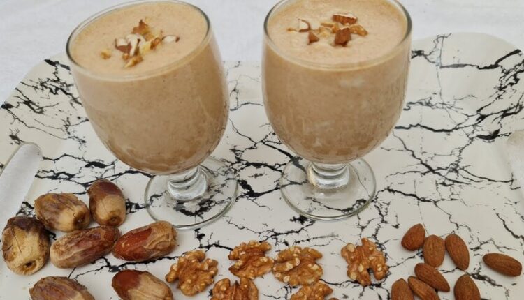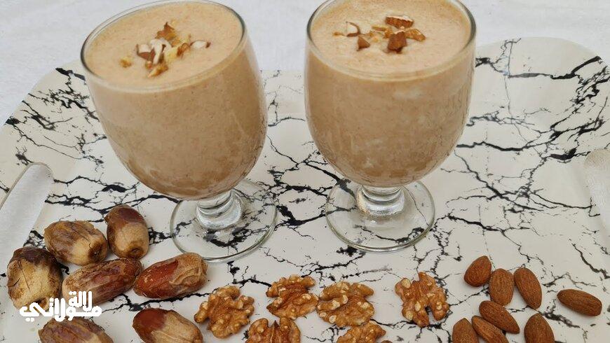 مكونات الخلطة: 10 حبات من التمر +3 حبات كبيرة من الموز + 3أكواب من الحليب + ملعقتين من بودرة الحليب + 10 حبة زبيب + 3 ملاعق من العسل + ملعقة من السكر