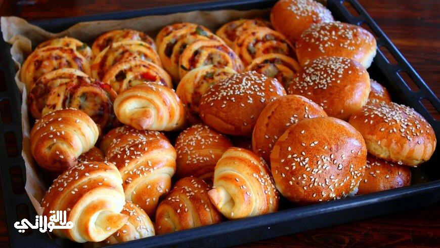 المقادير العجين كيلو + 100 غ دقيق أبيض مايعادل 11 كأس ملعقتين ك سكر ملعقتين ك خميرة الخبز 75 مل زبدة مذابة مايعادل نصف كأس ملعقة ك زيت زيتون 250 مل لبن ملعقة ك ملح ملعقة ص زعتر ماء دافئ للعجن تقريبا 400 مل أو كأسين+كأس إلا ربع للحشو شنيك: علبة تونة بالزيت جبن ايدام فلافل ألوان+فطر +بصل زيت زيتون للطهي ملح وفلفل اسود ثوم مهروس زعتر صلصة البيتزا الخبيزات: لحم مفروم قرع أخضر مبشور جزر مبشور بصل مفروم ملح وفلفل اسود حار و بودرة الثوم بابريكا وكركم زنجبيل زيت للطهي جبن السندويشات الكرواصون: جبن مثلث للتزيين: بيض للدهن وسمسم للتزيين