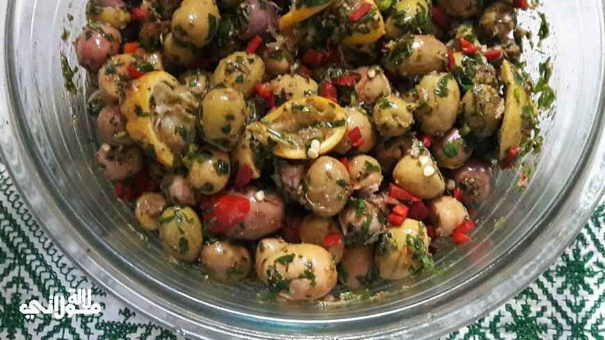 النصيحة : بعد أن تقومي بتخليل الزيتون مع جميع المكونات، أضيفي له ملعقة من الحمص المطحون إلى كافة المقدار وضعي الاناء في مكان بعيد عن الرطوبة إلى أن ينضج ثم قدميه مع كافة الأطباق التي ترغبين في تناولها انت واسرتك.