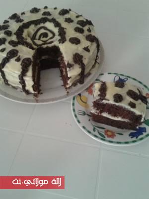نذوبو الزبدة شوية ونسكبوا عليها سنيدة نخلطوهم مزيان ونضيف عليهم الحليب وزيت والفاني وندربهم مزيان وها الكريمة واجدة ومن بعد نقسمو الكيكة على زوج طبقات بواسطة الخيط ونضيفو الكريمة في الوسط ونذهنو الكيكة كلها من الفوق وفتزيين يمكن ضيفي فواكة جافة مهرمشا او لا شكلاط محكوك التزيين كيبقا ليك وبصحة وراحة