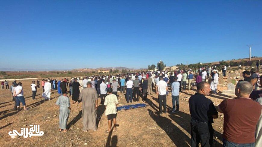 وبعد إقامة صلاة الجنازة بمسجد مولاي رشيد، تنقّل المشيّعون مصحوبين بعناصر من السلطات المحلية والدرك الملكي صوب المقبرة، حيث تمت عملية الدفن.