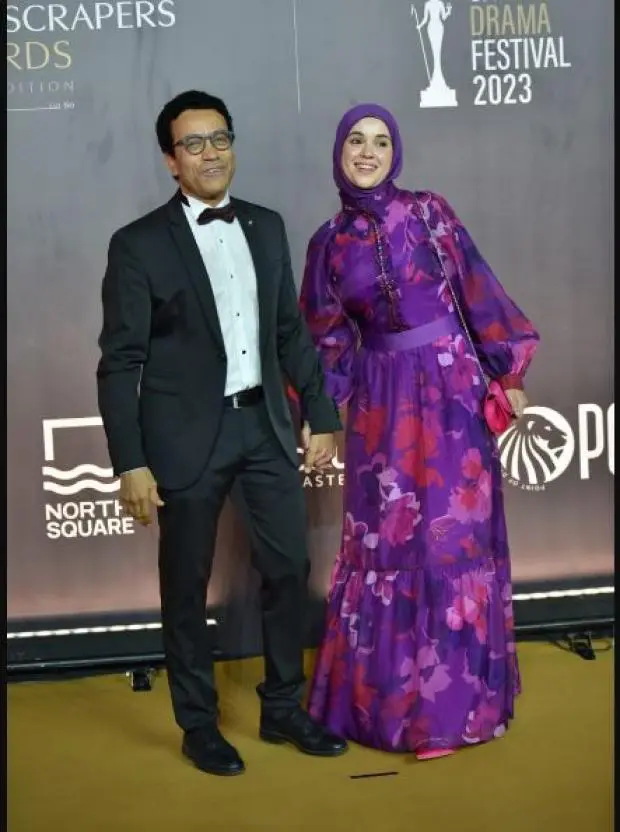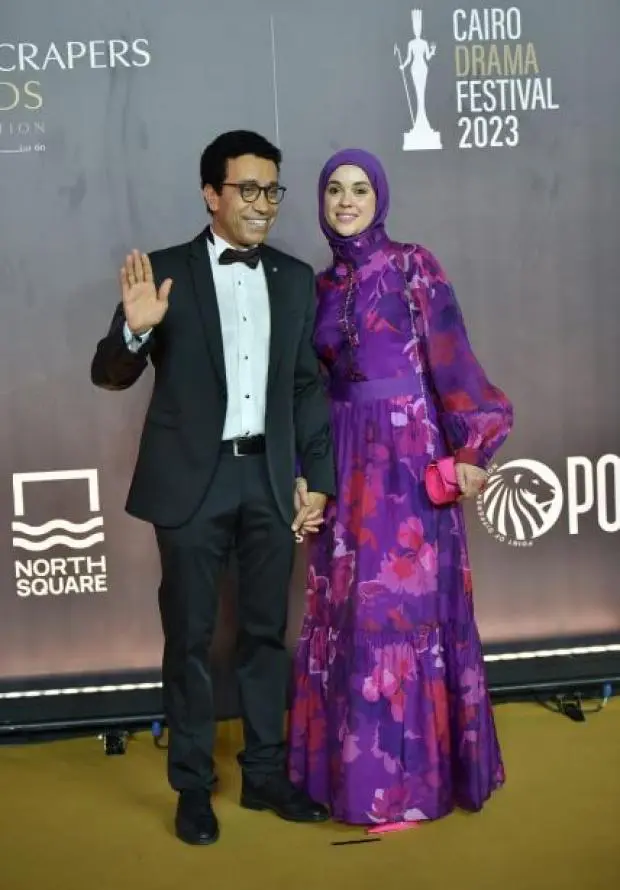 خطف الفنان سامح حسين وزوجته الأنظار خلال مرورهما على ريد كاربت منطقة نورث سكوير بمدينة العلمين الجديدة لحضور حفل مهرجان القاهرة للدراما ضمن فعاليات مهرجان العلمين الجديدة.
