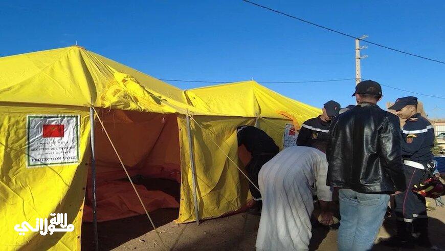 نصب خيام مؤقتة لإيواء المتضررين من “زلزال الحوز”