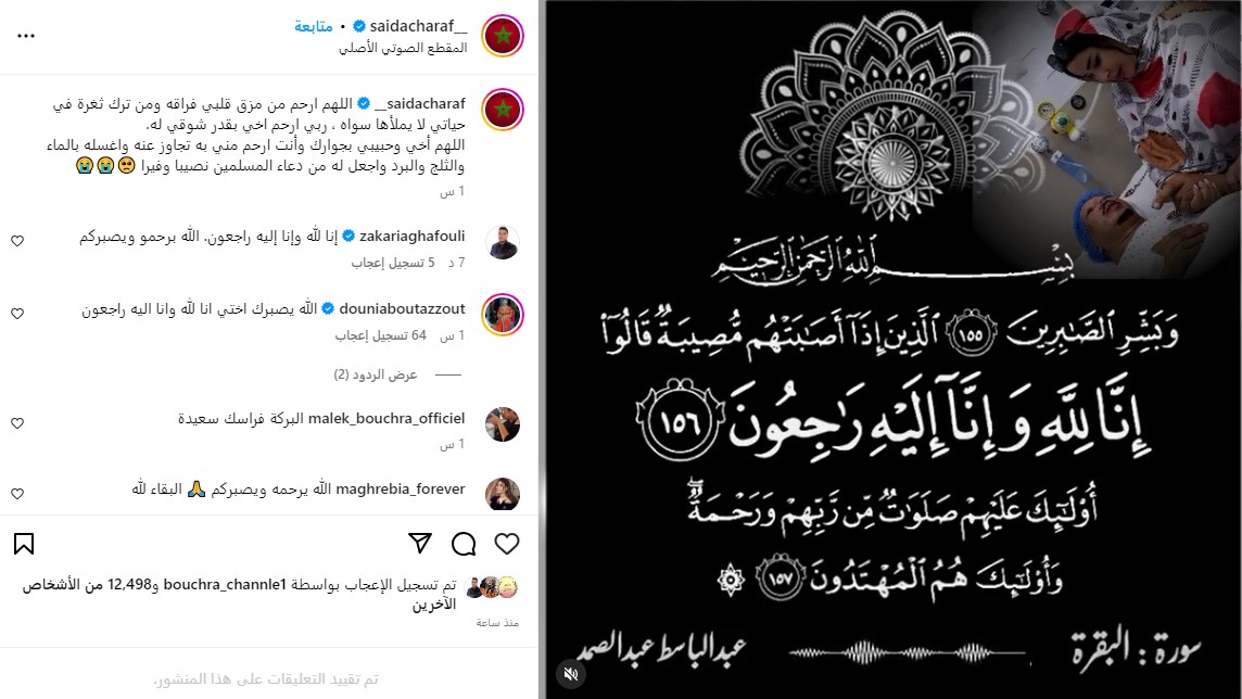 و كتبت الفنانة المغربية عبر خاصية القصص القصيرة على انستغرام:”أخي في ذمة الله يا رب صبرنا انا لله و انا اليه راجعون”.