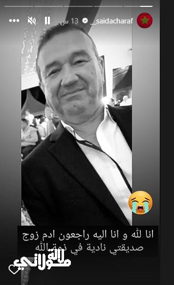 وقالت سعيدة شرف عبر مقطع فيديو عبر خاصية القصص القصيرة وهي تتحدث قائلة:” “جيت من العيون ولقيت صديقتي نادية لي عزيزة عليا موجدة صدقة لخويا اليوم غادي تكون، قضاء الله وقدره كانوا أقوى منا كاملين، والزوج ديالها أدم توفى فها الساعة هادي”.
