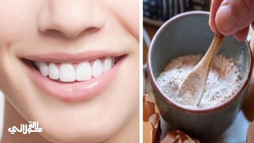 المكونات : كمية من قشور البيض المطحونة والناعمة + 3 ملاعق من عصير الليمون