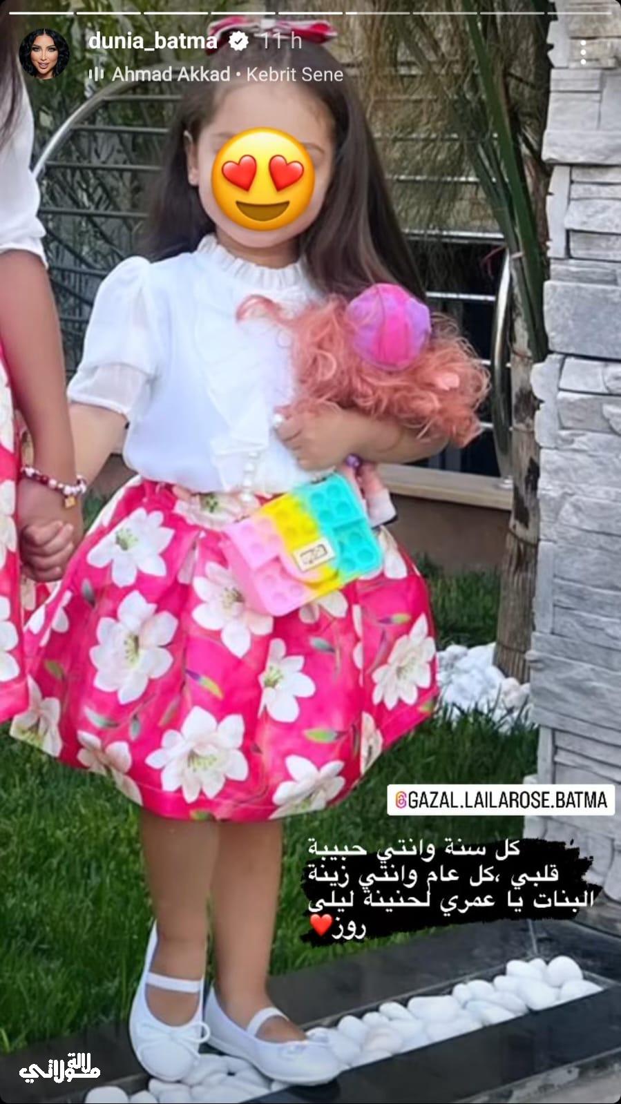 ونشرت الفنانة المغربية دنيا بطمة صورة لابنتها ليلى روز عبر خاصية القصص القصيرة، والتي اخفت فيها ملامحها كالعادة، وأرفقتها بتدوينة قالت من خلالها:”كل سنة وانتي حبيبة قلبي ، كل عام وانتي زينة البنات يا عمري لحنينة ليلى روز.”