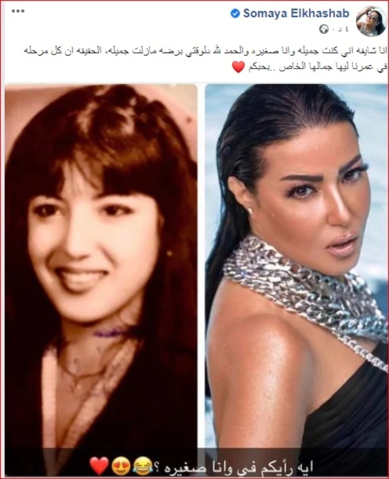 تلك الصورة كانت الفنانة قد نشرتها، عبر حسابها الخاص بموقع فيسبوك وعلقت عليها قائلة: « أنا شايفة إني كنت جميلة وأنا صغيرة، والحمد لله دلوقتي برضه مازلت جميلة، الحقيقة إن كل مرحلة في عمرنا ليها جمالها الخاص، بحبكم »، وقد تفاعل معها الكثير من متابعيها عبر التعليقات.