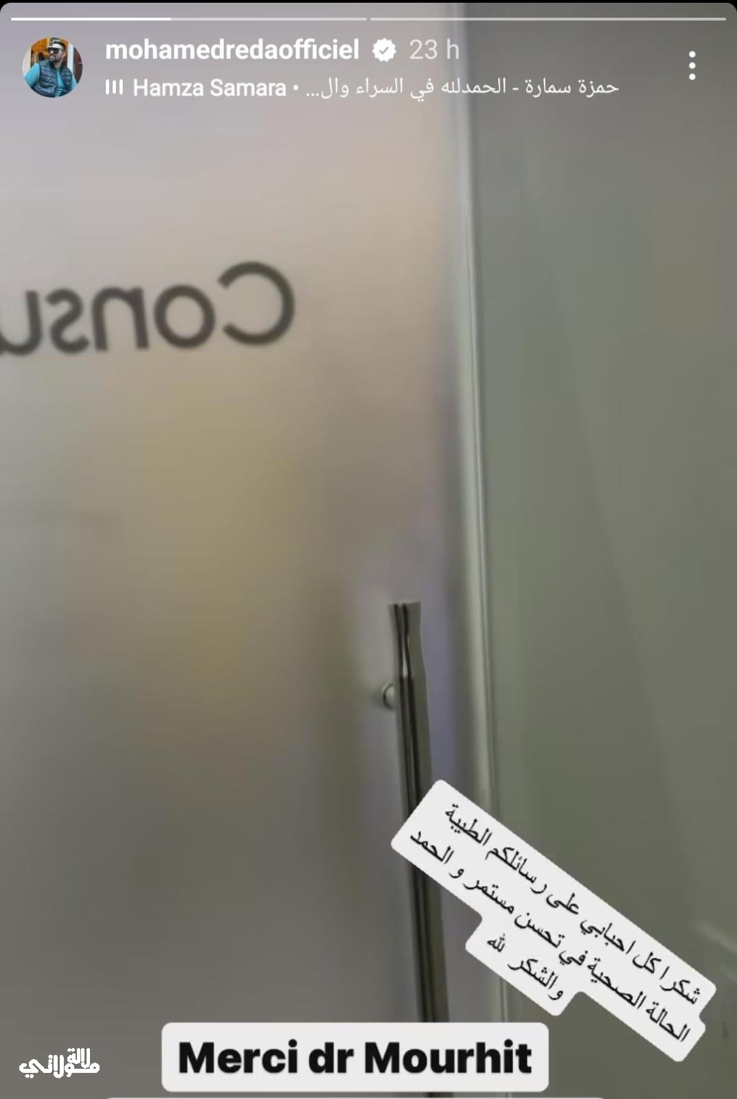 هذا وطمأن محمد رضا جمهوره عن حالته من خلال منشور له شاركه عبر خاصية القصص القصيرة، والذي وضح من خلاله أن حالته الصحية في تحسن.