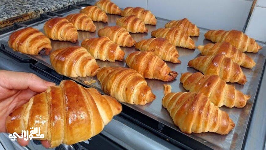 المكونات: كوب زيت نباتي،كوب حليب دافئ،بيضة بدرجة الغرف (نقوم بفصل الصفار عن البياض،ونستخدم البياض في العجينة والصفار لدهان الوجه)،ملعقة كبيرة من الخميرة الخبز الجافة، ملعقة صغيرة من الملح،100غرام زبدة من غير ملح للفرد (تكون لا باردة ولا لينة)،2 ملاعق صغيرة من السكر،دقيق حسب الخليط ، نشا لفرد،ملعقة صغيرة من الخل.