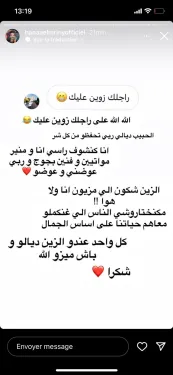 وكتبت الفنانة هناء المريني تدوينة نشرتها عبر خاصية القصص القصيرة، ردت فيها على تعليق متابعة قالت فيه:” راجلك زوين عليك.”