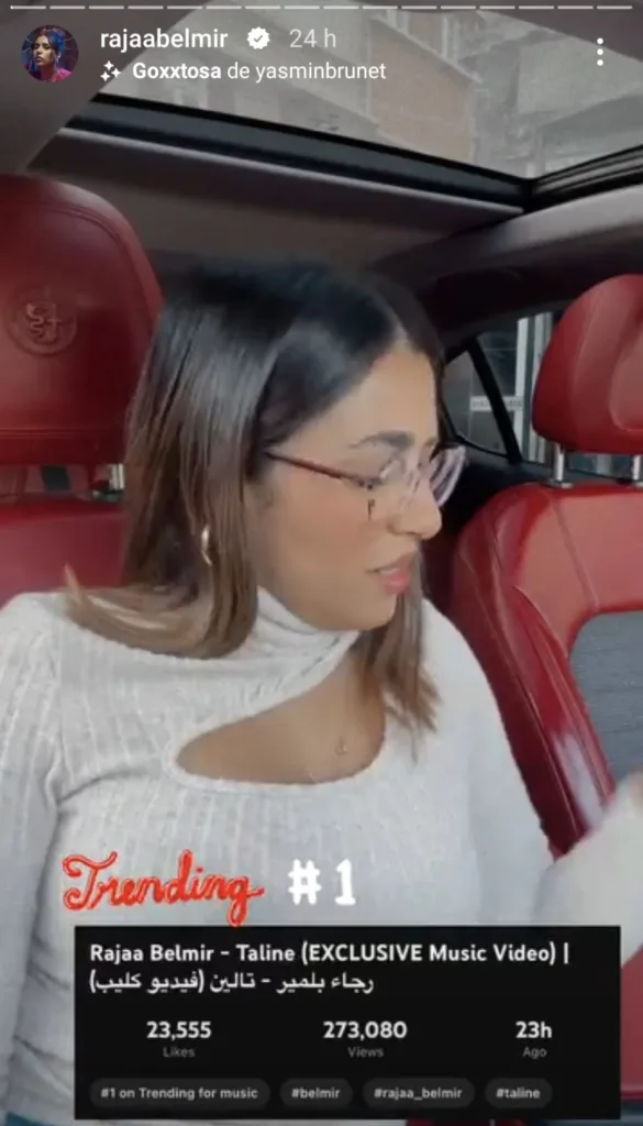لم تكن نجاحات رجاء بلمير تقتصر فقط على المجال الموسيقي، بل امتدت إلى مواقع التواصل الاجتماعي، حيث احتفلت مع متابعيها عبر منصة “الانستغرام” بتصدرها الترند المغربي. يعكس هذا الإنجاز الفني تأثيرها الإيجابي والبارز في عالم الفن والثقافة في المغرب، ويعزز مكانتها كواحدة من الفنانات المتألقات في المشهد الفني الحديث.
