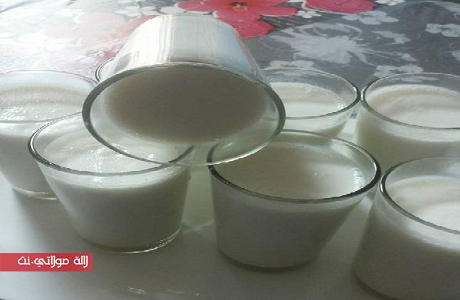 • نضيف للنصف المتبقي من الحليب سكر سنيدة والياغورت المعطر بالفانيلا ونخلط جيدا