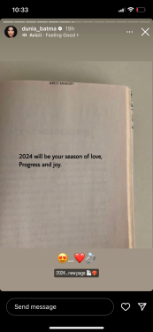 ونشرت دنيا بطمة تدوينة تقول 2024 ستكون موسم الحب والتقدم والفرح”.