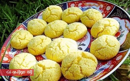 < 250 غ سميد رقيق < 85 مل من الزبدة الذائبة والزيت < نصف كيس خميرة كيماوية < ملعقة كبيرة نافع < ملعقة كبيرة زنجلان < ملح < ملعقتان كبيرتان سكر < 125 مل حليب < سميدة غليظة طريقة التحضير : < اخلطي السميدة الرقيقة مع مزيج الزبدة والزيت للحصول على عجين كعجين السابلي. أضيفي باقي المقادير واخلطي. اصنعي كويرات صغيرة في حجم البيضة. مرري الكويرات في السميدة الغليظة واصنعي كويرات على شكل غريبة. صففي الحرشة في صفيحة مغطاة بورق كلاصي. اطهي الحرشة حتى يصير لونها ذهبيا في فرن محمى على درجة حرارة 200 مئوية.
