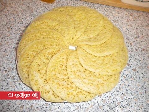 - نضع جميع المقادير في الخلاط الكهربائي حتى يتجانس الخليط جيدا، يمكن إضافة الماء عند الحاجة حتى نحصل على خليط على خليط سائل ومتجانس ونترك الخليط يختمر مدة 5 دقائق. نسخن مقلاة مقاومة للالتصاق ثم نأخذ مقدار مغرفة حسب حجم المقلاة ونبسط على نار متوسطة حتى تنضج وتتشكل عيون على الوجه، نكرر العملية حتى ننتهي من الخليط.