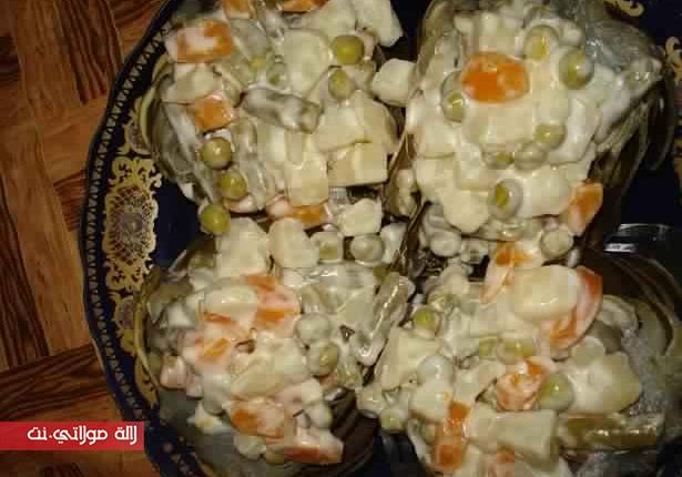 نخلط الزيت مع الليمون والزعتر والفلفل والملح والكمون، نقلبهم جيدا للحصول على صوص السلطة