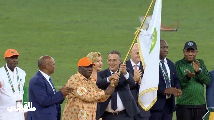 بصفة رسيمة تسلم فوزي لقجع، رئيس الجامعة الملكية المغربية لكرة القدم علم تنظيم النسخة المقبلة للكان المغرب 2025.