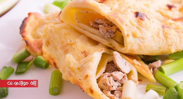ـ دجاج مشحر فالزيت والتوابل وبصلة ومعدنوس وثوم والزيتون دوائر شريحة جبن.
