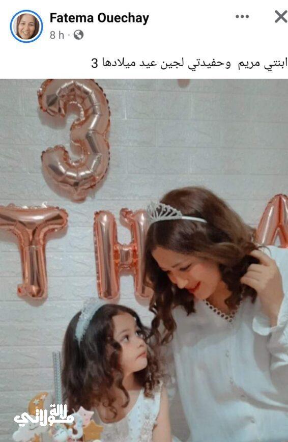 شاركت الفنانة القديرة فاطمة وشاي متابعيها عبر حسابها الرسمي على الموقع الأزرق “فايسبوك” صورة لابنتها وحفيدتها التي تحتفل بذكرى ميلادها الثالثة.