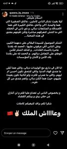 وأكدت إيمان في خرجة لها عبر حسابها الرسمي على موقع تبادل الصور والفيديوهات وبالضبط عبر خاصية القصص القصيرة والتي قالت في تدوينة لها:”لسلام عليكم، أولا بغيت نشكر الناس كاملين، عائلتي الصغيرة لي هوما والديا أخي وأختي، عائلتي الكبيرة لي هوما الأصدقاء والمتابعات ديالي، وشي ناس في الخفاء اللي مكنتش كنعرفهم مباشرة ولكن لقيتهم بجنبي في هذه المحنة”٠