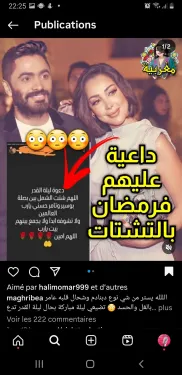 وقالت المتابعة في تدوينتها عبر انستغرام:”دعوة ليلة القدر، اللهم شتت الشمل بين بصلة بوسيل وتامر حسني يا رب العالمين، ولا تشوفه أبدا ولا يجمع بينهم بيت يا رب، اللهم آمين”.