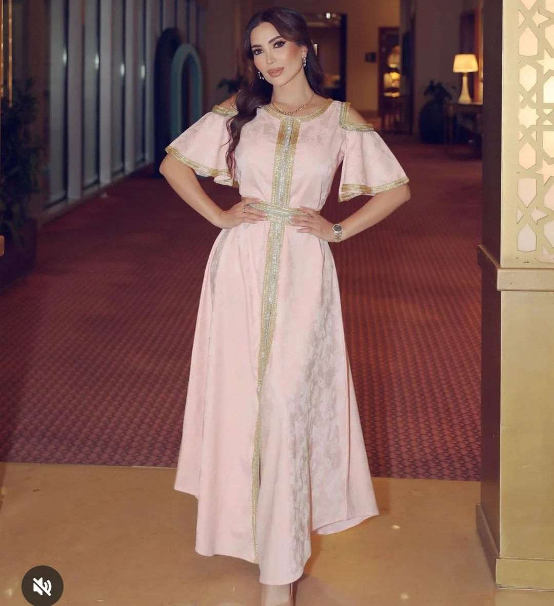 وخطفت نسرين طافش الأنظار بإطلالة رمضانية، مرتدية قفطان باللون البينك الهادئ، مرصع بالنقوشات الذهبية اللافتة تبرز انوثتها، بصيحة النصف كم وأكمام مكشوفة.