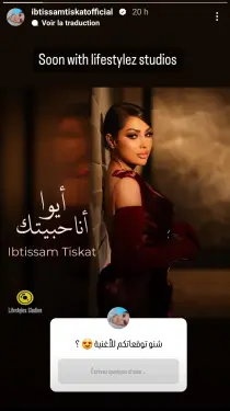 وكشفت ابتسام تسكت عن هذه المفاجأة لجمهورها وهي عملها الفني الجديد الذي تعاملت فيه مع شركة “لايف ستايلز ستوديوز” للانتاج الفني، حيث نشرت بوستر الأغنية عبر خاصية القصص القصيرة لتشارك متابعيها الخبر .