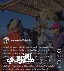 وقالت الفنانة نورا الصقلي في تدوينتها التي أرفقتها بصورة من المسلسل :”شكرا للجمهور على الدعم والتشجيع والنقد، هنيئا لكل الفنانين الذين أبدعوا في هذا العمل وعلى رأسهم سامية أقريو.”