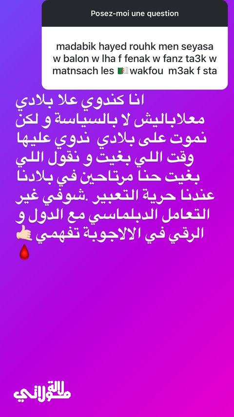 ونشر ايهاب أمير عبر حسابه الرسمي على موثع نبادل الصور والفيديوهات إنستغرام رسالة المتابعة التي قالت فيها: “مادابيك حيد روحك من السياسة، والبالون ولها ففنك وفانز تاعك، وماتنساش لي وقفوا معك فستاراك”.