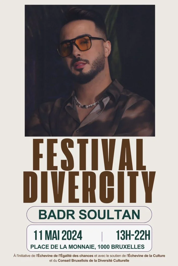 من المنتظر أن يشارك الفنان بدر سلطان في اضخم مهرجان عالمي DiverCity الذي سينظم ابتداء من 11 ماي 2024 بالعاصمة البلجيكية بروكسيل وهو الحدث الفني الكبير الذي سيمثل فيه هذا الأخير المملكة المغربية، وذلك بحضور نخبة كبيرة من الفنانين العالميين.