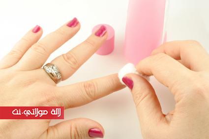 1) قومي برش القليل من الماء المعطر أو العطر على قطعة من القطن وقومي بفرك طلاء الأظافر بهذه القطعة القطنية.