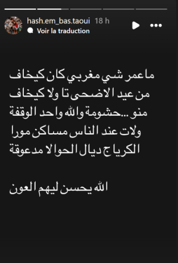 وكشف هاشم البسطاوي في تدوينة نشرها عبر حسابه الرسمي على موقع تبادل الصور والفيديوهات إنستغرام، قال فيها:”ما عمر شي مغربي كان كيخاف من عيد الأَضحى تا ولا كيخاف منو.. حشومة والله واحد الوقفة ولات عند الناس مساكن مورا الكرياج ديال الحوالا مدعوقة.. الله يحسن ليهم العون.”