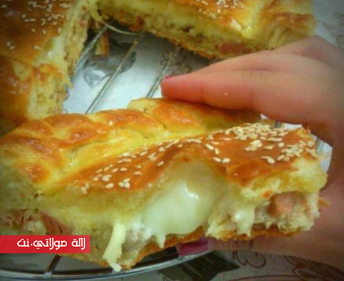 الحشو: فطر،دجاج،ثوم،توابل تقليهم شوي مبعد تزيديلهم پاتي دجاج ،تونة،جبن ابيض،تحطيهم فوق لعجينة بعد ماتكوني حليتيها فالمول تزيدي جبن شيدار و تزيدي طبقة من العجين وتسكري الحواف.