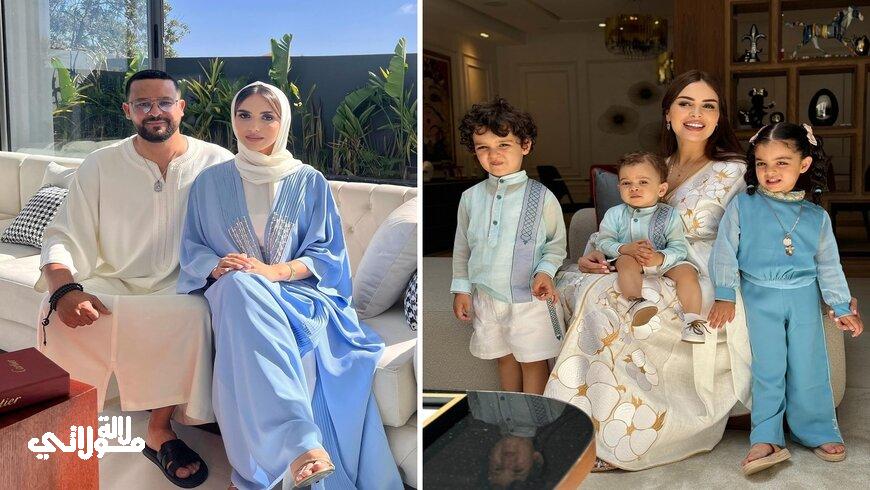 واختارت صفاء حبيركو أن ترتدي قفطانا مميزا جمعت فيه بين اللمسة التقليدية والعصري، كما اختارت لأطفالها نفس الستايل لباسا جمع بين الخامات التقليدية والعصرية.