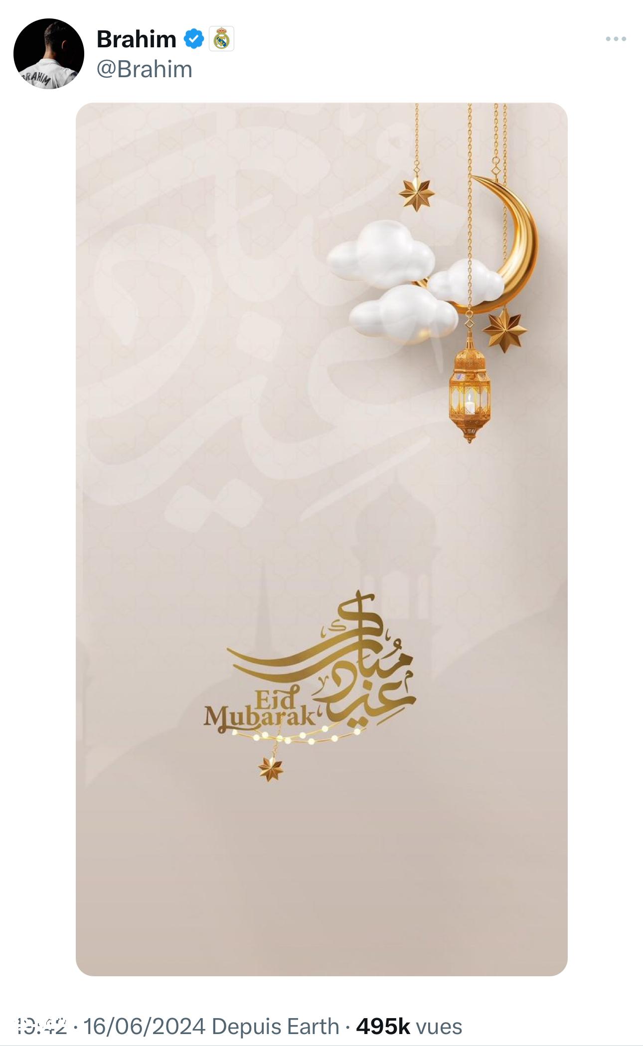 هنأ الدولي المغربي إبراهيم دياز، المغاربة و كافة المسلمين بعيد الأضحى.