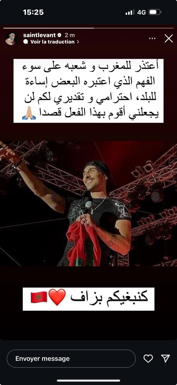 سان لوفون لجأ إلى حسابه بموقع انستغرام، ليبعث تدوينة جاء فيها: “أعتذر للمغرب وشعبه على سوء الفهم الذي اعتبره البعض إساءة للبلد، احترامي وتقديري لكم لن يجعلني أقول بهذا الفعل قصدا”.