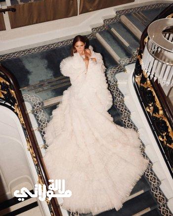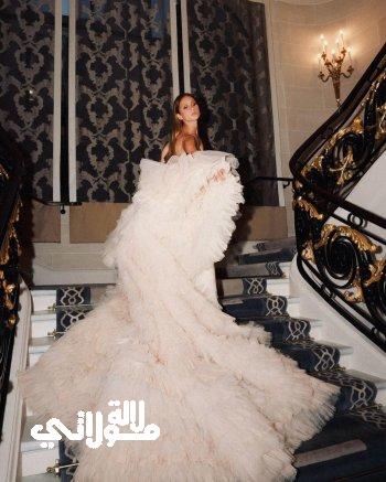 وظهرت نيللي في الصور بفستان أبيض رائع وضخم، بقصة طويلة، جاء القسم العلوي منه ضيقاً ويعانق الجسد، ومزيناً بالكامل بالكريستال اللامع الذي أضاف مزيداً من الأناقة على الفستان. أما الجزء السفلي منه، فجاء واسعاً وطويلاً يلامس الأرض، على شكل ذيل طويل من الكشكش، وبنمط الطبقات.