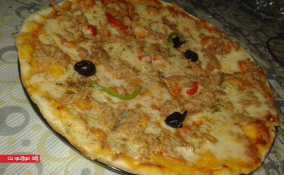 فيها 2 بيضات و5فرماجات متلتين و2 معالق زيت الزيتون و4معالق حليب سائل وملح وابزار ابيض وشوية زعتر خدمتهوم فالخلاط مزيان وصبيتهوم على البيتزا ودخلتها للفرن وبالصحة والعافية.